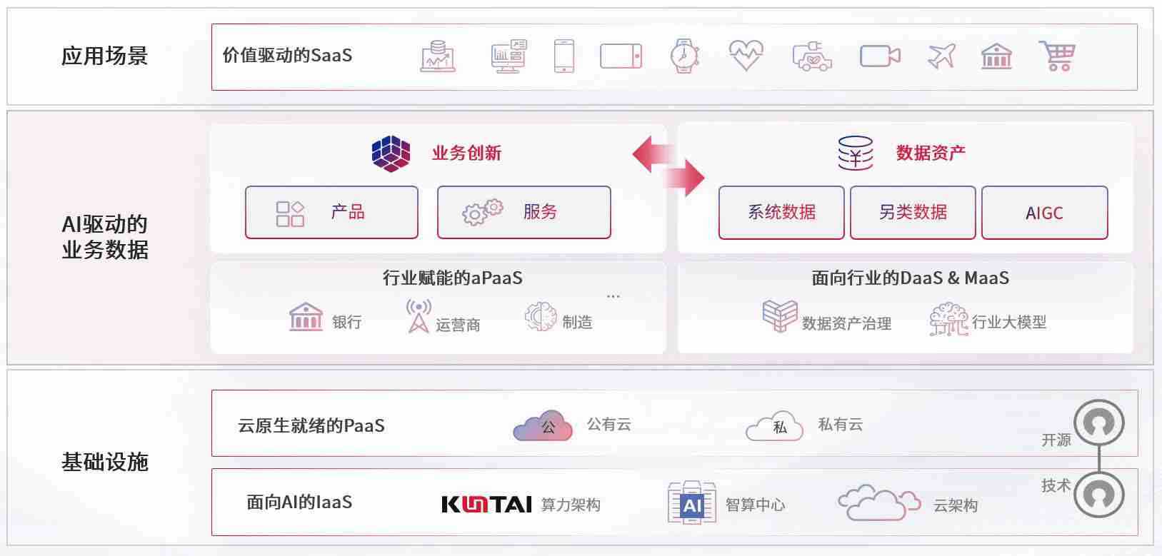 数字时代,,,,围绕企业数字化转型的关键要素,,,壹号平台数码开创性的提出数云融合战略和技术体系框架,,,,着力在云原生、、数字原生、、AI原生和信创产业上架构产品和服务能力,,为处在不同数字化转型阶段的快消零售、、、汽车、、金融、、、、医疗、、政企、、、、教育、、运营商等行业客户提供泛在的敏捷IT能力和融合的数据驱动能力,,,构建跨界融合创新的数字业务场景和新业务模式,,助力企业级客户建立面向未来的核心能力和竞争优势,,全面推动社会的数字化、、、智能化转型升级。。。